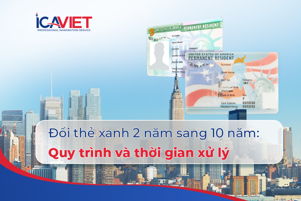 Chuyển đổi thẻ xanh 2 năm lên thẻ xanh 10 năm là bước quan trọng để duy trì tình trạng cư trú lâu dài tại Mỹ. Chuẩn bị đúng, đầy đủ và trung thực là yếu tố then chốt để tránh bị từ chối hoặc trì hoãn. Nếu bạn chưa chắc chắn về cách làm hồ sơ hoặc gặp các tình huống đặc biệt như ly hôn, thiếu giấy tờ, mối quan hệ ngắn,… hãy liên hệ ICAVIET để được hỗ trợ nhé!